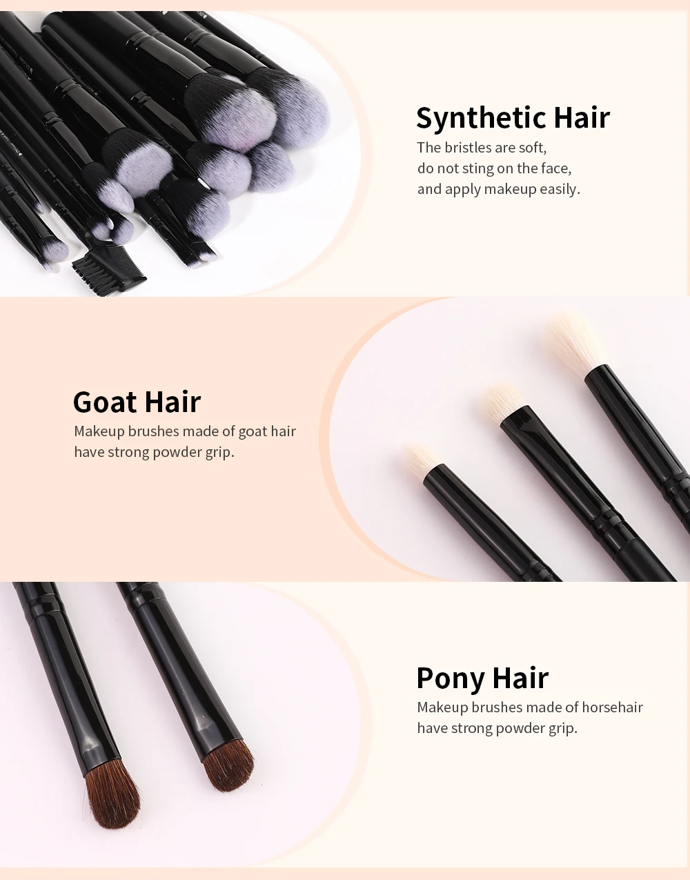 Escovas Material: alta qualidade cabra cabelo, cabelo sintético, pônei cabelo